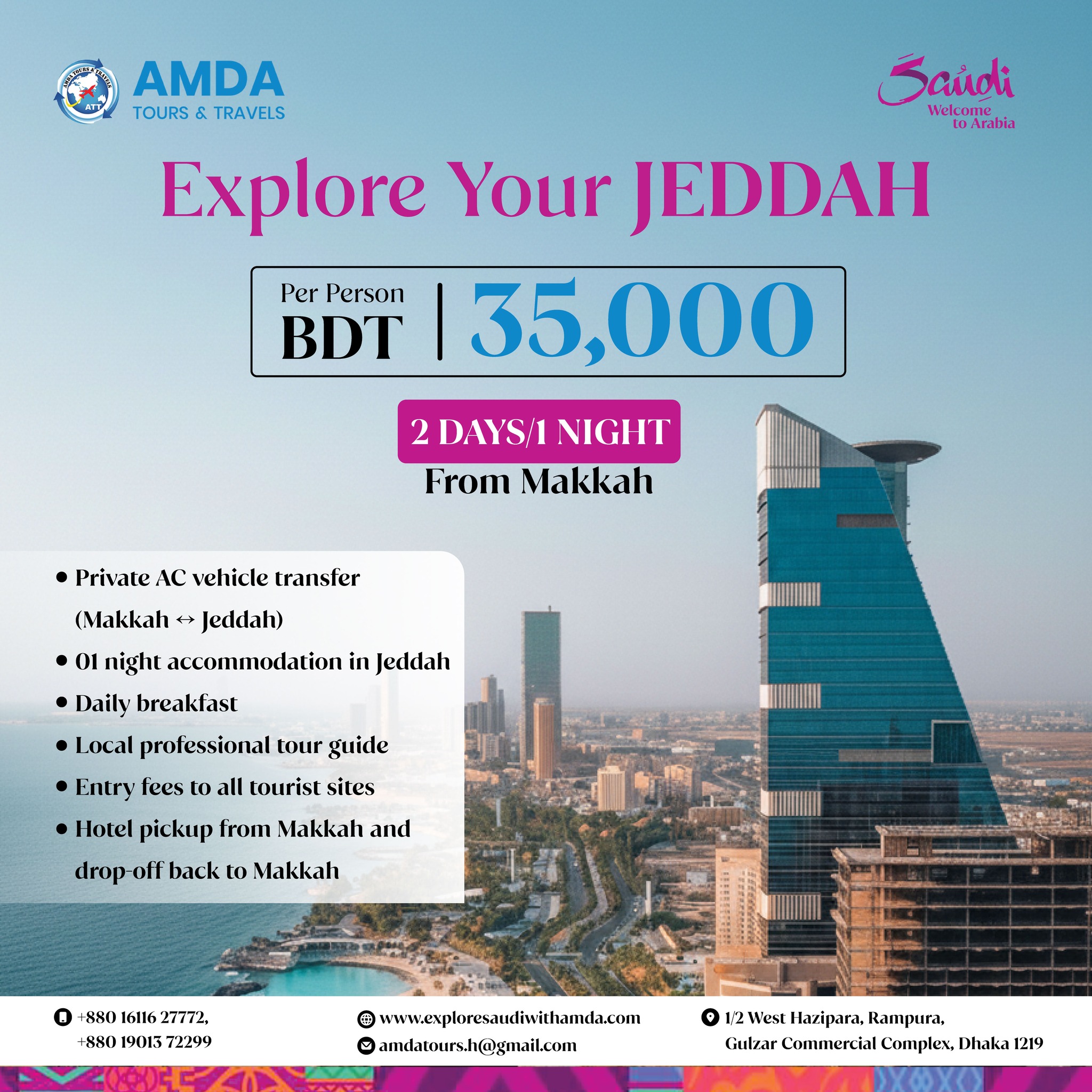 Don’t just witness Saudi—live it. Let Saudi Tourism’s extraordinary sites and AMDA Tours & Travels’ dedicated services invite you to the journey of a lifetime. Whether you seek spiritual solace, historical discovery, or modern wonder, your Saudi adventure starts here.